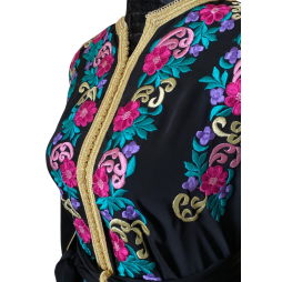 Une robe élégante et colorée, idéale pour des occasions spéciales, alliant tradition et confort.