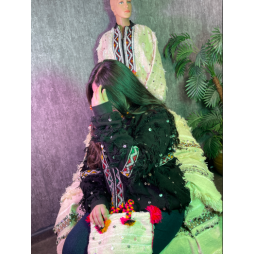 Veste traditionnelle au design authentique, réalisée en textile décoré de motifs berbères et de détails artisanaux. Une pièce élégante et intemporelle, idéale pour un style moderne ou traditionnel.