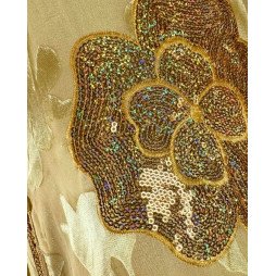 Offrez-vous une allure majestueuse avec cette djellaba marocaine en tissu satiné doré, sublimée par de magnifiques motifs floraux en relief. Son éclat lumineux et sa texture fluide en font une pièce idéale pour les occasions spéciales ou les tenues de réception à la maison.