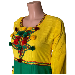gandoura marocaine brodeé jaune/vert